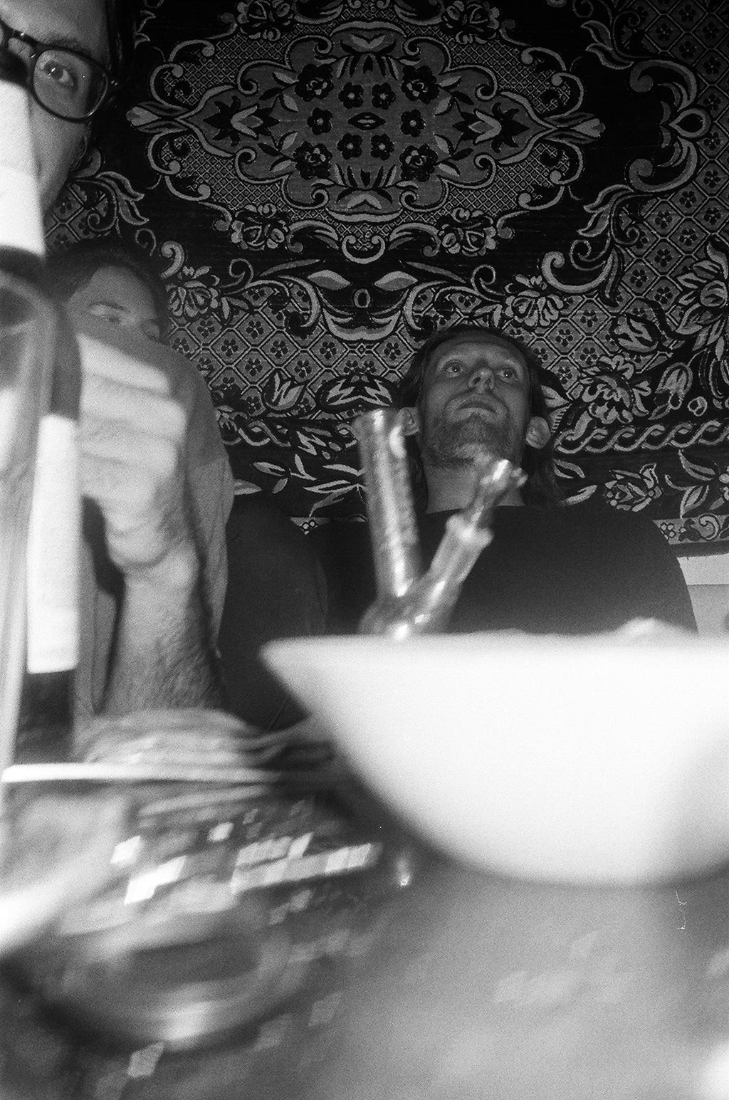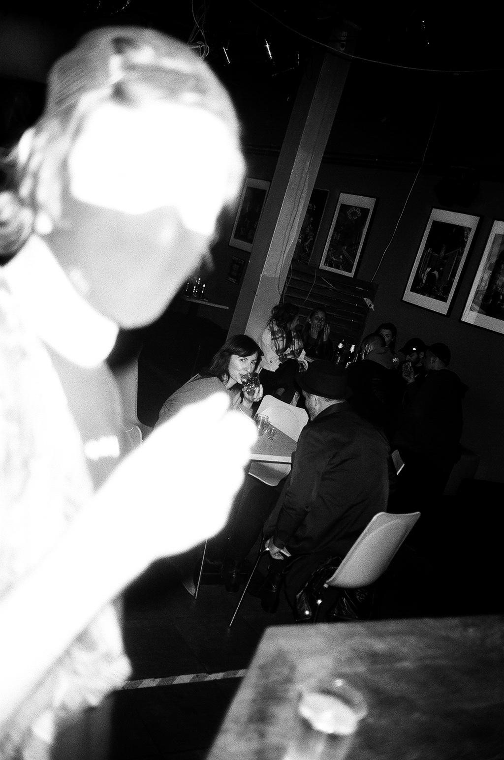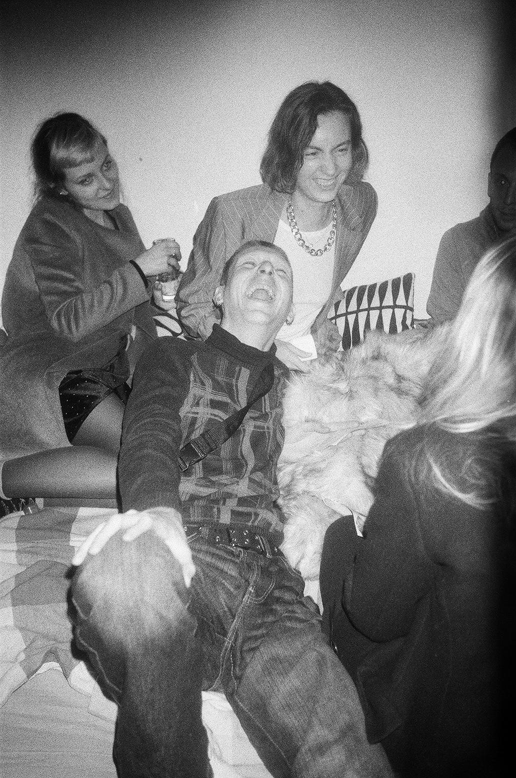 Analog photography, however, gives a false sense that the photo won’t end up on Facebook, Instagram, or wherever else it might be uploaded these days. Of course, that’s not true—it can end up there. But not immediately, in a burst of social media impulsiveness. The time between taking the photo and developing and scanning it allows for careful consideration of the context and a genuine desire to share it. This ties into the core principle of afterparty photography, which is: I ask before I publish, and before I ask, I consider whether the person in the photo might feel uncomfortable with its existence. This is one of the reasons why the photos I take at parties and afterparties are shot on analog, black-and-white film. I have no intention of digitally erasing evidence of the revelry, nor do I plan to beautify or filter the photos I take. This honesty allows the people I spend afterparties with to let me photograph them. It’s gotten to the point where I no longer need to ask for permission, which I consider a great privilege. By respecting that privilege, I allow myself to take quick, candid shots. “Speed photography” is an anthropological approach to capturing moments by surprise, with the hope of preserving the scene as unchanged as possible. Sometimes I give a one-second warning before taking the photo, and sometimes I manage to click the shutter as I pull the camera out of my pocket, resulting in dozens of wasted or missed frames. But I believe the few successful shots make it all worthwhile.