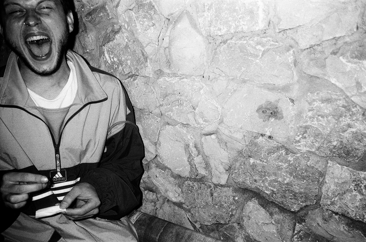 I’m often asked: why do you shoot in black and white? The first reason is very pragmatic, perhaps even mundane. Stripping the color from the vibrant life of an afterparty-goer removes unnecessary emphasis on dark circles under the eyes, papery skin, and bloodshot eyes. It’s not about proving that people are addicts or pointing out their condition. Choosing black-and-white film simplifies the beautification process, but without me having to decide what to keep, what to erase, who to add or subtract three kilograms, or who to grant or rob of several hours of sleep. Additionally, I believe that the grayscale reflects the general view of afterparties, even if a particular photo was taken in a much more colorful moment. Symbolically, the lack of color resonates with the overall tone of the afterparty experience.